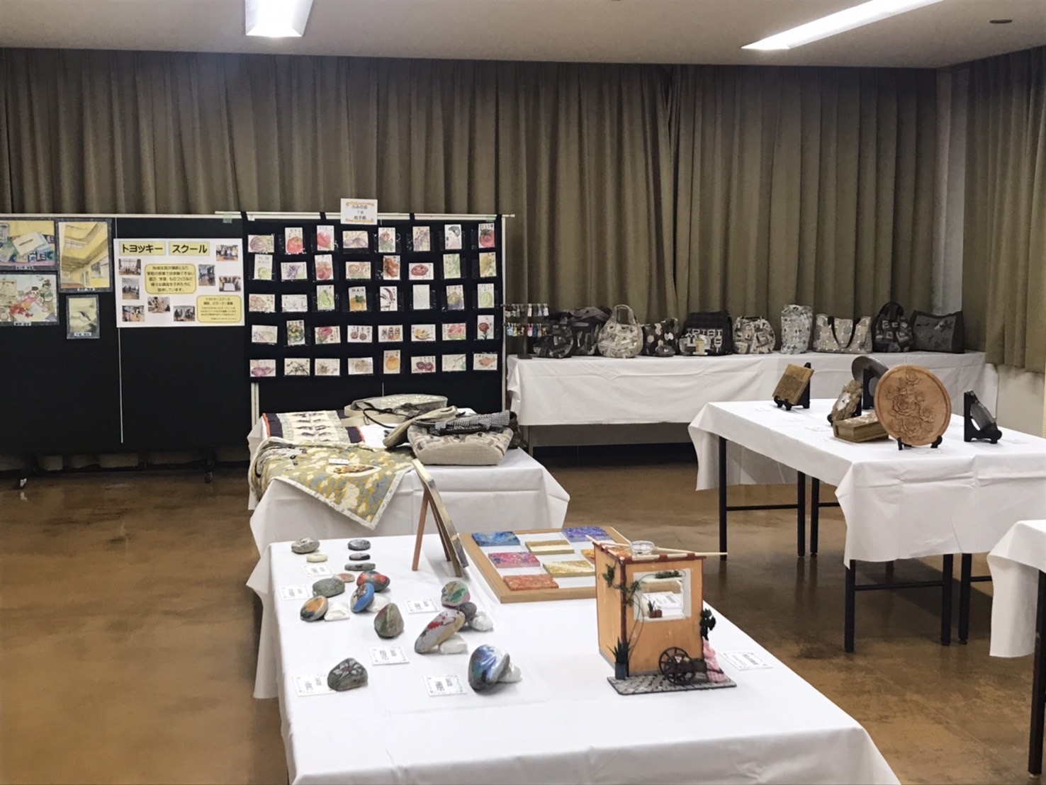 昨年の作品展から校区市民展に拡大し校区の多くの皆さんの日ごろの絵画、手芸、細工等の出品がありました。